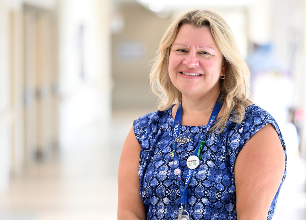 Terri Lynn’s connection to Osler runs deep. Her career began with a role her mother—a nurse at Peel Memorial Hospital—spotted on the job posting board. She’s grown from a physiotherapy assistant to director, worked across nearly every department, and helped shape the care countless patients receive today. But it’s the care her own family received that moved her to become a donor.